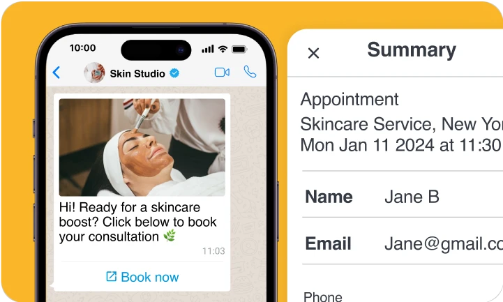 Create interactive forms with a WhatsApp chatbot for event sign-ups, promotions, product selections, and appointments, all within a chat.